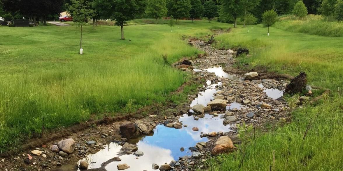 - Excavation & Reshaping of meandering stream channel