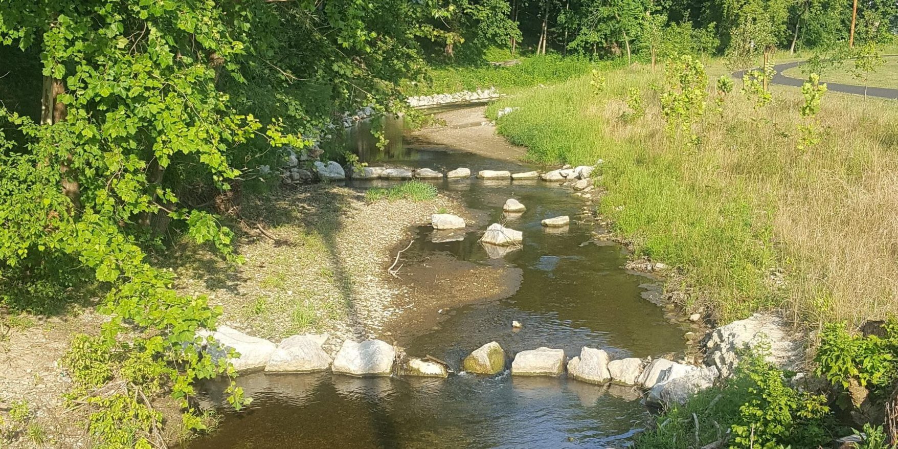 As the Environmental General Contractor, Environmental Remediation Contractor restored Fetter’s Run Park in Lancaster, Ohio. This stream restoration project involved clearing & grubbing land adjacent to the stream. We did Demolition of an existing bike path & pavilion then removal of an existing playground. Excavation of a stream bank to lay back slope to create a floodplain bench for the stream. We then installed in stream structures including, j-hooks, rock weirs & three clusters of eddy rocks. Next, we installed over 4,000 SF of articulating concrete block mat for slope stabilization. The project was finished by installing a new bike path followed by planting various trees & shrubs then seeding & mulching the entire site.